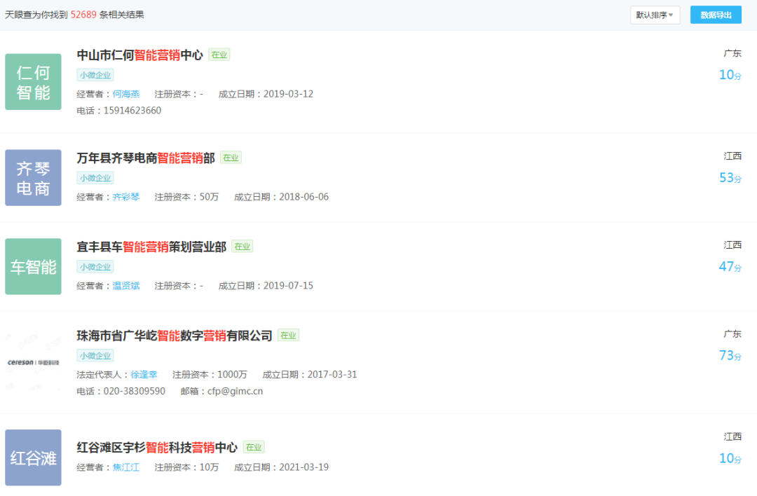 不得不说,在大数据、深度学习、人工智能等技术的推动下,智能营销为很多企业的增长注入一股新的动能。据天眼查APP查询,目前处于在业状态的智能营销相关业务企业5万多家,可见智能营销是企业服务领域的重要部分。