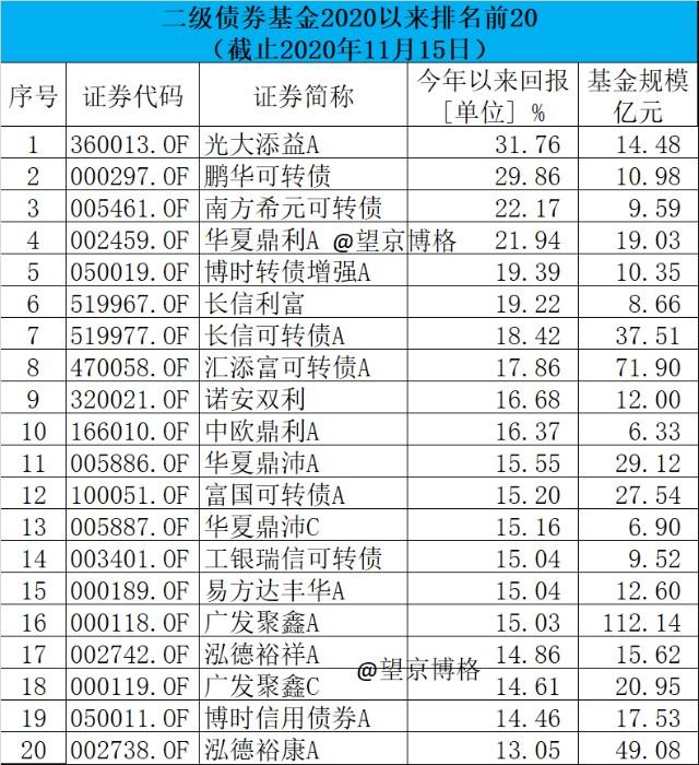 (1)债券基金指数今年以来涨幅2.52%,估计今年涨幅也不会超过3%,跟历史平均年化6.13%相比,2020年可以说是债券基金的小年了;