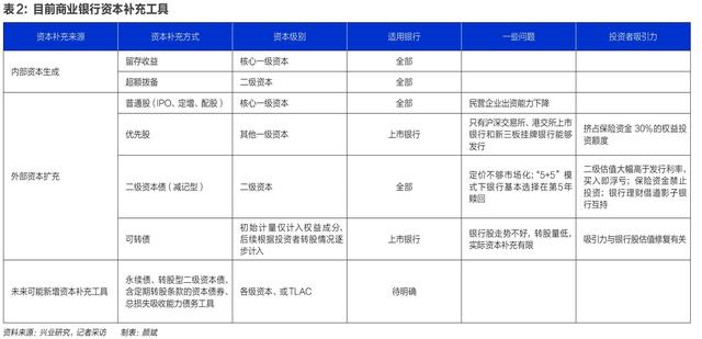 商业银行外部募资补充资本,典型的是通过IPO、配股、定增等的增资扩股可补充核心一级资本,此外还有用于补充各级资本的资本工具。目前中资银行可发行可转债、优先股、减记型二级资本债券,分别补充核心一级资本、一般一级资本和二级资本。