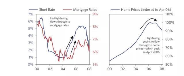 由于短端利率水平上行,导致持有短周期的资产吸引力变大,类似于现金资产。而持有长周期的资产吸引力变小,类似于股票,房子,债券等。资金从金融资产中撤出,导致他们的价值出现下滑。资产价格下跌,带来了财富效应的负反馈!
