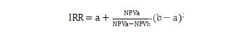 计算出该项目的IRR。此处a,b均代表选取的cost of capital的值,并且直接用%前的数字计算即可(即15%-10%=5%,一直带着%计算即可,不用变成0.05进行计算)。此处可以自由选择,比较常选的是10%和15%。计算时候会有差异,考试不会扣分。