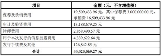 金埔园林本次发行费用(不含增值税)总额为4002.31万元,其中,长江证券承销保荐有限公司与华金证券合赚保荐及承销费用1950.94万元。