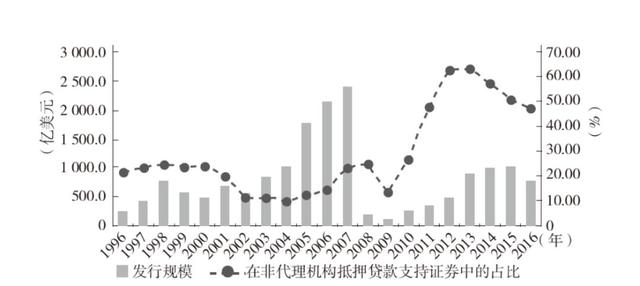 至今,美国商业地产抵押贷款支持证券已发展30余年,近3年发行规模处在千亿美元的量级。1996—2016年美国商业地产抵押贷款支持证券发行规模如下图所示。