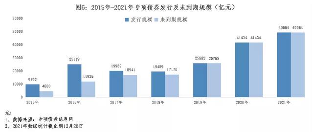 2020年、2021年分别发行专项债券41434亿元、49064亿元,全部未到期。