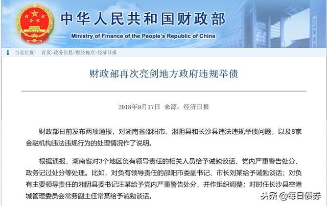 财政部再次亮剑地方政府违规举债