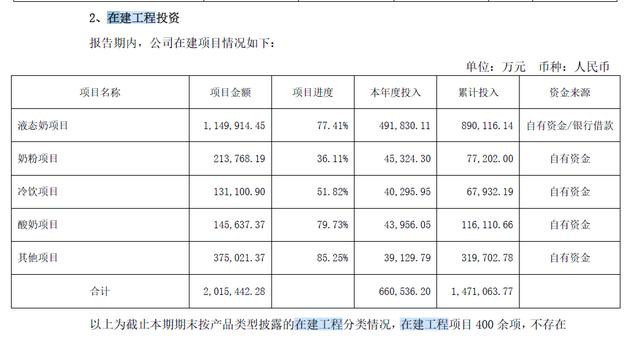 把在建工程和投资项目结合起来看,可以知道伊利股份一方面进行产业链的整合,向上游扩张,一方面扩大自己的产品线,主要还是液态奶。