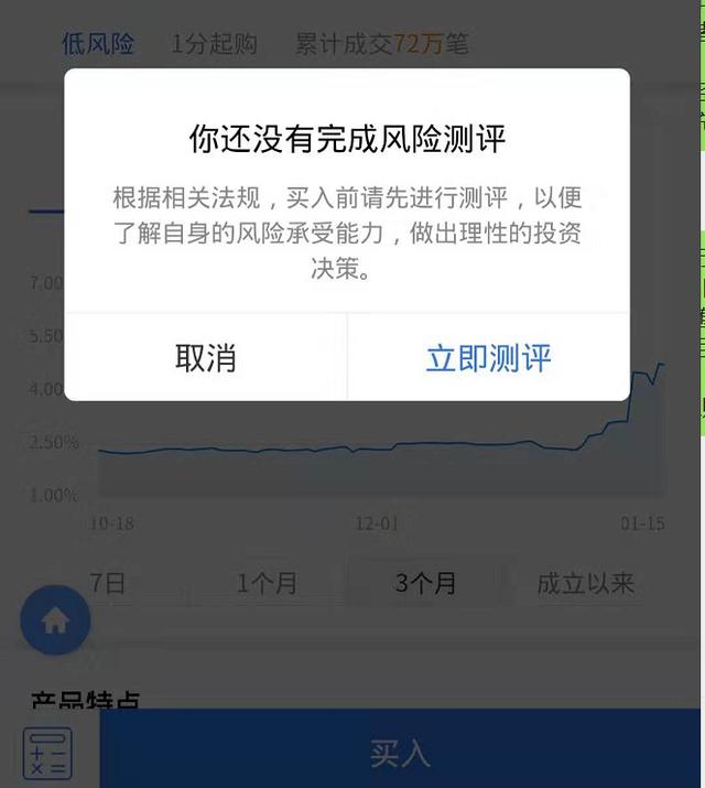 在开通理财之前,用户需要做一个风险测评,以评估用户的风险承受能力,以便用户认识自己的理财行为。