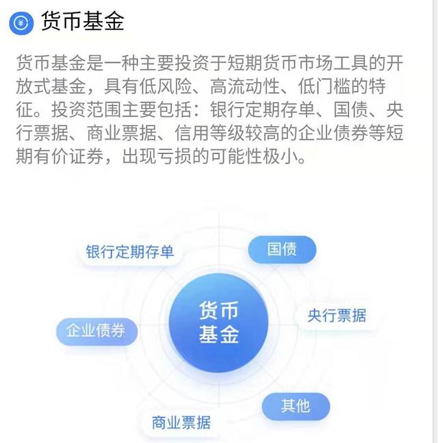 它是投放于短期货币市场工具的开放式基金,它是一种低风险,高流动性,低门槛的理财产品,主要投资的对象包括央行票据、国债、银行定期存单,商业票据,信用等级较高的企业短期债券,因此亏损的可能性极小。