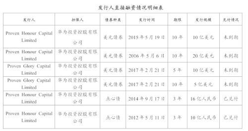 债券募集说明书显示,自2014年来,除2018年外,华为每年均会在香港通过债券的方式融资。