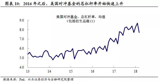 “有钱没需求”,资管机构“加杠杆 降流动性”,ETF和对冲基金受追捧。次贷危机之后,美联储货币政策大幅宽松,但实体经济的复苏实际上相对有限。在此背景下,金融市场的流动性充足,但是优质资产有限,资本回报率实际上有所降低。在这样“有钱没需求 低资本回报率”环境里,资管机构为了达到目标收益率,不得不增加风险敞口。因此,我们看到美国金融市场结构出现如下明显的变化: