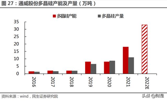 通威股份——多晶硅料 电池片双龙头,技术优势铸就行业领先地位 硅料环节:技术、成本、规模多项占优。 紧跟前沿技术,确保领先地位。公司以四川省多晶硅工程技术研究中心为依托, 进行除杂技术研究,不断提升晶硅产品质量,持续节能降耗,保持技术领先。2021 年公司光伏技术中心重点开展新技术、新产品(如 TOPCon、HJT)量产导入过程 中的跨板块链接和集成工作,进一步加强对行业跨代技术、前沿技术(包括 HBC、 钙钛矿、叠层电池/组件、光伏 储能等技术)的跟进、研究和开发。