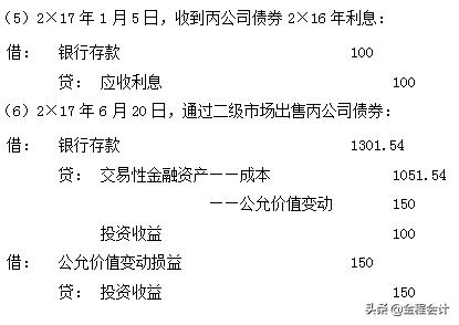 (5)2×17年6月20日,通过二级市场出售丙公司债券,取得价款1301.54万元。