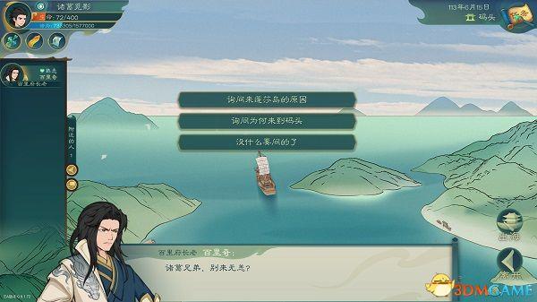 113年6月,顺利到达蓬莱岛,见到了百里奇,胜利会师,对话百里奇,选择鼓励他。