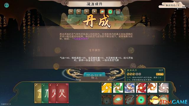 在结丹之前,强烈建议新手玩家把丹道提升到略有小成,点出假丹,因为我们要结的金丹是金木双属性金丹,这是为了方便后续剧情开放难度加大之后转天剑用的,金木双属性金丹需要在凝液成丹阶段有四颗金属性丹和四颗木属性丹再加任意属性的丹,点出假丹之后会比较简单。