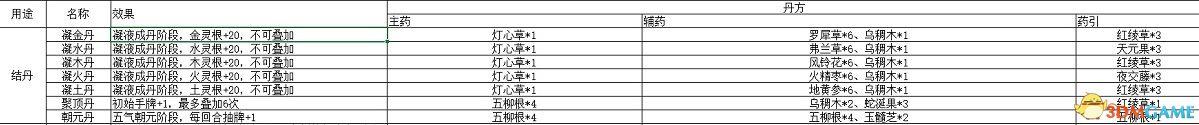 任务做完之后,就需要开始准备结丹秘术和丹药,列表贴在下面:(这里朝元丹丹方中主药五柳根改为2个)