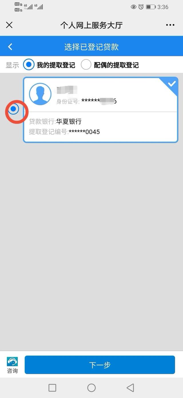 注:如果是夫妻共同还款的,配偶在公积金管理中心现场办理网上提取业务后,可以再选择配偶的提取登记。