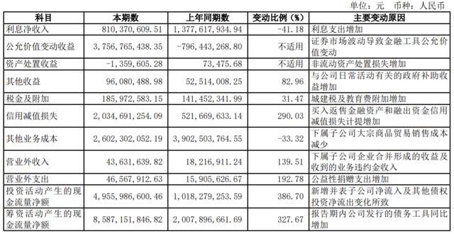 今年上半年,中信证券业绩实现较快增长,但其中利息净收入大降,且信用减值损失大增。