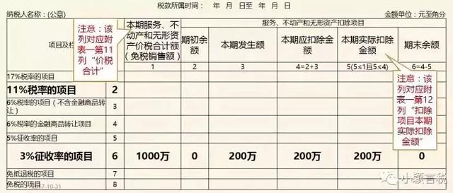 1、填写附表三(服务、不动产和无形资产扣除项目明细)第3列本期发生额填200。