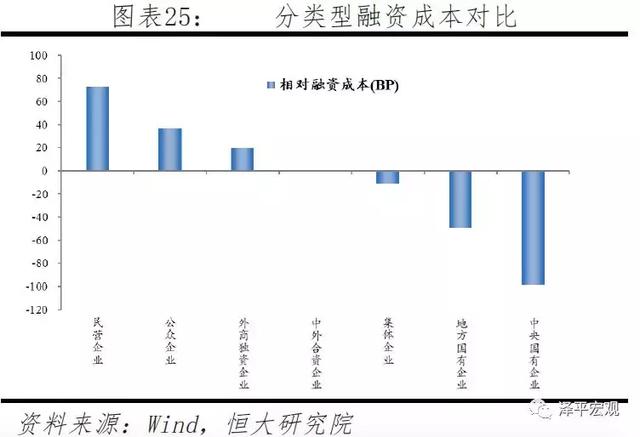以通信行业为基准,可以看出不同行业间的融资成本具有较大差异,化工、采掘、建材三类污染严重或过剩产能严重、投资受严格限制的行业赫然位于前列;以中外合资企业为基准,不同所有制类型的融资成本差异更为巨大,最低的中央国有企业比最高的民营企业低出超170BP,显示在债券投资与流通中仍然具有显著的“所有制歧视”现象。
