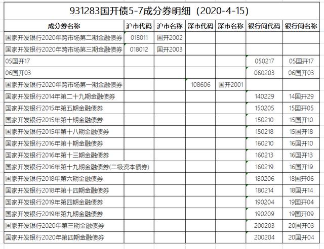 下图为中证国开债 5-7年指数(931283)的成分券明细。