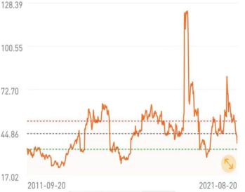但是从投资角度,它的历史波动过大,很容易被炒高,导致波动风险较大。参考意见一样,仓位占你权益仓位的20%,可以继续持有,将来如果发生急速冲高,可能需要分批减仓,不要做成长期持有了、来回坐电梯。