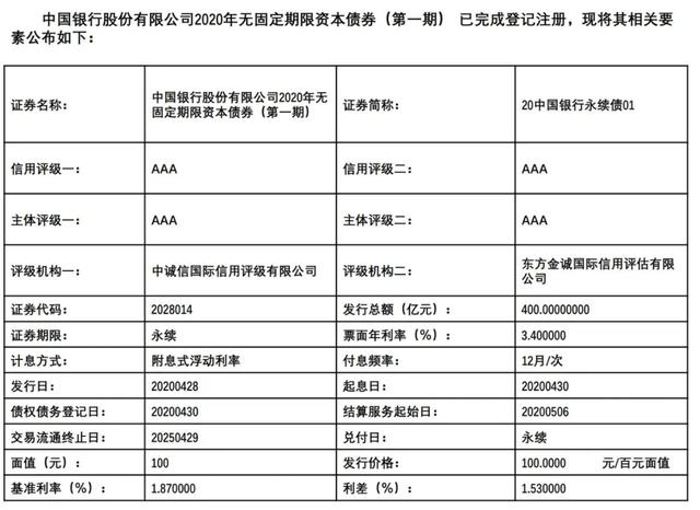 3.4%利率是如何确定呢?基准利率是五年期国债的市场利率(例如,中行永续债发行的时候这个李老师是1.87%),利差就是永续债高于基准利率的部分这个是确定(例如,中行永续债的利差是1.53%),两者相加就是3.4%,如果中行永续债利率是3.4%,未来招商银行也要发行永续债的利率估计也就在3.5%左右。