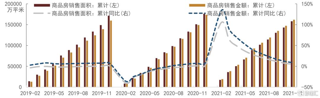 新房销售:根据中国指数研究院统计,2021年11月我们跟踪的70城商品房销售面积环比下降4%、同比下降24%,带动1-11月商品房销售面积累计同比增速回落至13%;11月销售额环比上升1%、同比下降19%,累计1-11月销售额同比增速下降至26%。销售额表现略好于销售面积,主要是一二线城市有发力,销售面积和销售额环比都是增长的,但同比仍然都是下跌。根据统计局,11月全国商品房销售面积15090万平米、销售额14482亿元,环比分别增长18.7%和16.9%,同比分别下跌14%和16.3%,与2019年11月相比分别下降3.6%和0.7%;累计1-11月全国商品房销售面积158131万平米、销售额161667亿元,同比增速下降至4.84%和8.52%,较2019年1-11月同比分别增长6.2%和16.3%。投资方面,全国11月新开工面积同比下降21%,累计下降9%,相比2019年也有10.9%的下降;房地产开发投资完成额单月同比下降4.3%,累计同比增长6%,相比2019年增长13.2%。