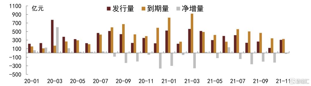 地产美元债11月无一级新发,融资净流出约-13亿美元,中资房企境外再融资渠道在负面事件频发背景下持续冰封。12月以来有少量新发:宝龙地产12月9日在2024年到期债券基础上增发1.5亿美元,增发价为本金额的87%,增发收益率为12%,增发后该债券和公司其他存量债券二级市场表现良好;绿地集团12月7日以担保结构定价8个月、3.5亿美元债券,最终指导价和发行价为8%,发行价明显低于公司存量债券二级市场报价。