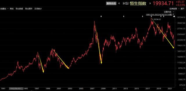 过去30年香港恒生指数,暴跌50%的就有4次,下跌30%就更多了,不想数。