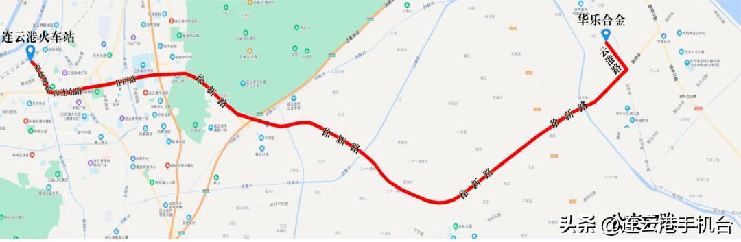 线路走向:连云港火车站发车经盐河路、海连路、瀛洲路、苍梧路、徐新路至华乐合金