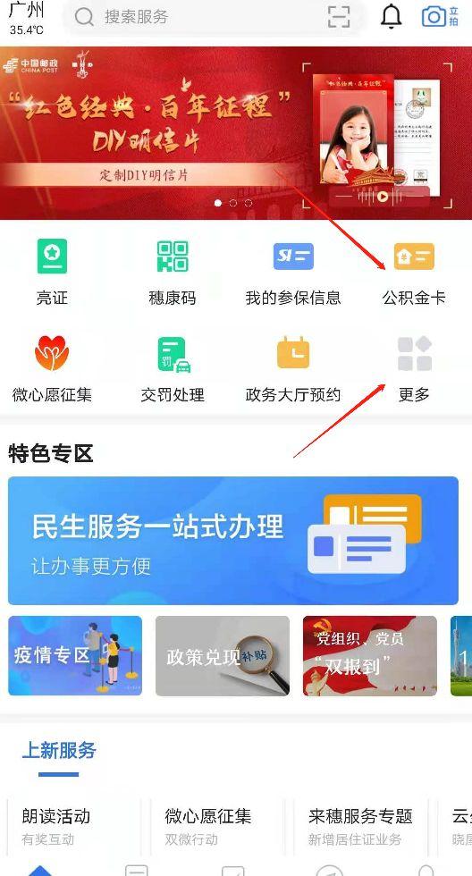 登录后进入页面点击公积金,或者说是点更多,在里面再找公积金提取也可以。