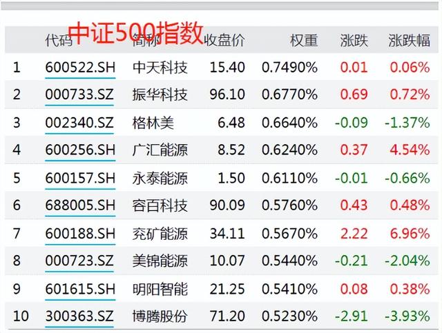 从前十大权重成份股,也可以明显看出差异。沪深300指数大部分是银行、白酒,还有就是新能源电池、光伏等。中证500指数以能源股为主,有不少的煤炭、上游资源品等,基本都是周期股。