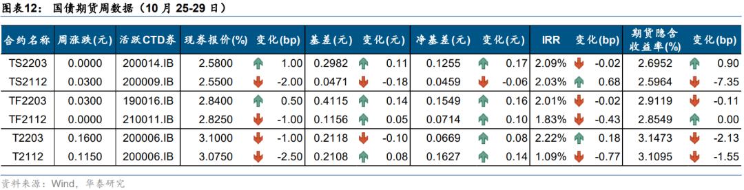 T2112 大部分可交割券的IRR继续下行,包括CTD券 200006 也出现了小幅下行,这主要是因为临近交割 IRR都会出现小幅下行。210009.IB 的IRR已低于-5%,如若继续走低则存在反套机会,值得关注。