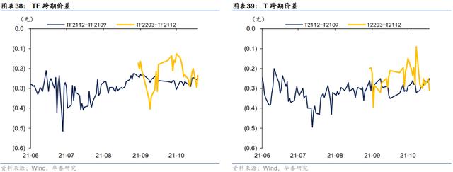 目前多数可交割券IRR在-5%至2%之间,多空双方获利空间均不大,因此均可进入交割或移仓。考虑到T2112合约的多数可交割券IRR为负,并有小幅下行的趋势,尤其一般越临近交割月,非CTD券的IRR会大概率下行,因此接下来空头主导移仓的力量可能会相对大一些,这有利于跨期价差(远月-近月)出现下行。但此次移仓的趋势性并不如以往明显,空间也不大,因此需谨慎参与。