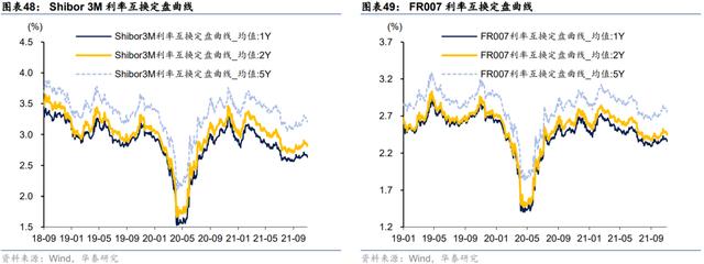 10月18-22日,互换利率上行,互换品种间基差走阔,不同期限期差走阔。FR007 1Y互换利率持平,5Y互换利率上行3bp,Shibor 3M 1Y互换利率上行1bp,5Y互换利率上行5bp。1Y Shibor 3M/FR007互换基差走阔1bp,5Y互换基差走阔2bp。Shibor 3M 1×5Y期差走阔4bp,FR007 1×5Y期差走阔2bp。
