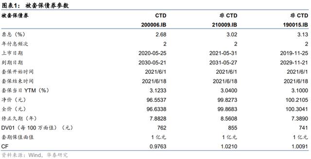 2021年6月1日,T2112的活跃CTD券为200006.IB,收盘价为98.08元。我们选取3只被套保债券,包括CTD券200006.IB,非CTD券210009.IB和190015.IB,债券参数如图表1所示。