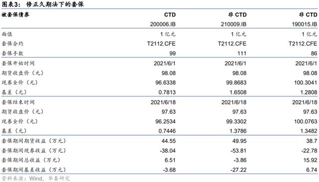 由此我们便可以测算在2021年6月1-18日该期间内,T2112对面值1亿元的200006.IB、210009.IB、190015.IB的套保效果究竟如何,具体如图表3、4所示。