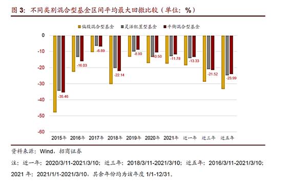 下图三张图分别展示了偏股混合基金、灵活配置基金和平衡混合基金近一年、三年、五年的历史平均收益、下跌市中的平均收益率,以及区间平均最大回撤对比等,从中可以直观看到平衡混合基金能涨抗跌的优势。