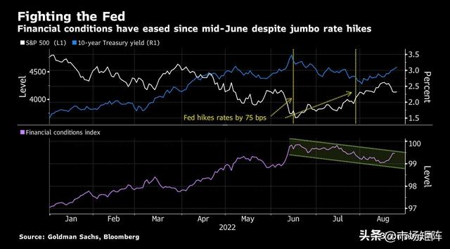 自6月中旬以来,尽管大幅加息,金融状况仍然宽松 _By Bloomberg