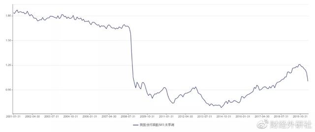 非专业人士理解信用货币的供给增速ΔM就存在困难,就更不容易意识到,除了货币供应量,货币流通速度会影响到物价变化。可以这么理解,比如在金本位下,即不变币值和货币供给的环境里。一个经济体有一吨的黄金对应社会当期的商品和劳务购买需要。如果这一吨的黄金,集中于少数人手里,和均匀分布在大部分人手里,用于在一年内购买商品和劳务的次数会相比之下少很多,这就是货币流通速度更慢的情况。货币流通速度在货币供给不变的情况下下降,那名义GDP就下降。就会发生通货紧缩和经济萧条。那么在信用货币体系下,即便货币供给增速提高,也依旧有可能因为货币流通速度下降的更快,导致物价下降。