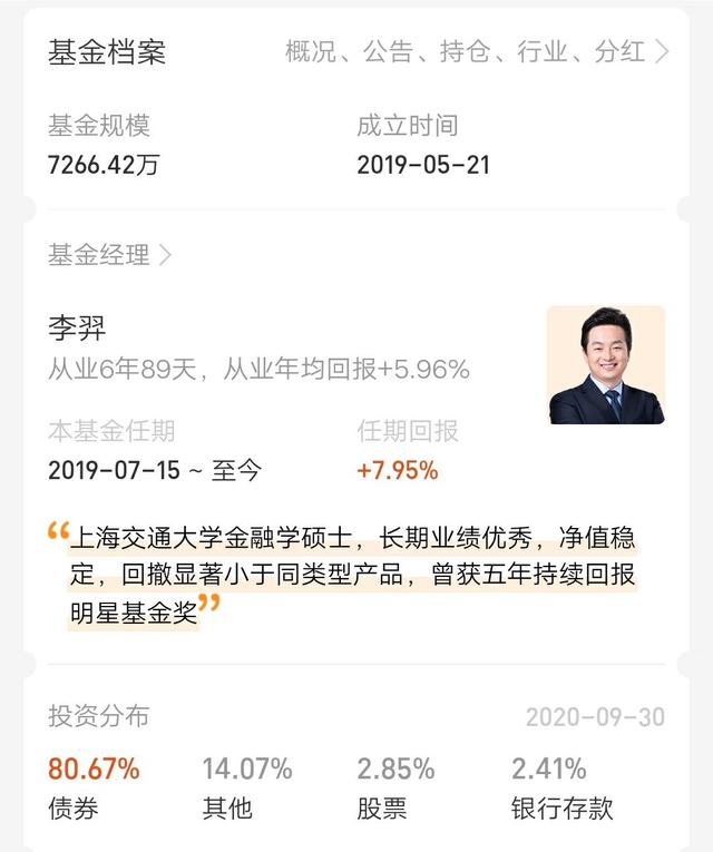 买基金就如同找对象,适合自己才是最重要的。如果你对投资不想担负太大的风险,对收益又有一定的诉求,想让投资生活变成小而美好的幸福生活。昊昊发现一只好基金:浦银安盛双债增强债券C,代码为006467。