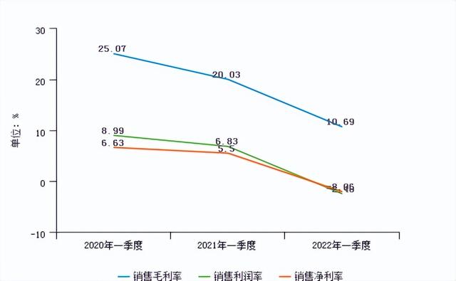 金科地产集团股份有限公司2022年一季度的销售毛利率为10.69%,销售利润率为-2.48%,销售净利率为-2.06%。相比上年同期,销售毛利率、销售利润率与销售净利率均有所下降,说明企业的获利能力有所减弱。
