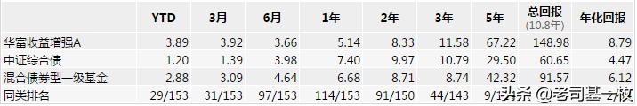 该基金成立于2008年5月,是华富旗下成立时间最早、总回报率最高的债券基金。华富收益增强A/增强B成立至今的总回报分别高达148.98%和138.25%,年化回报超过8%,三大报权威奖项也是拿了一大堆。